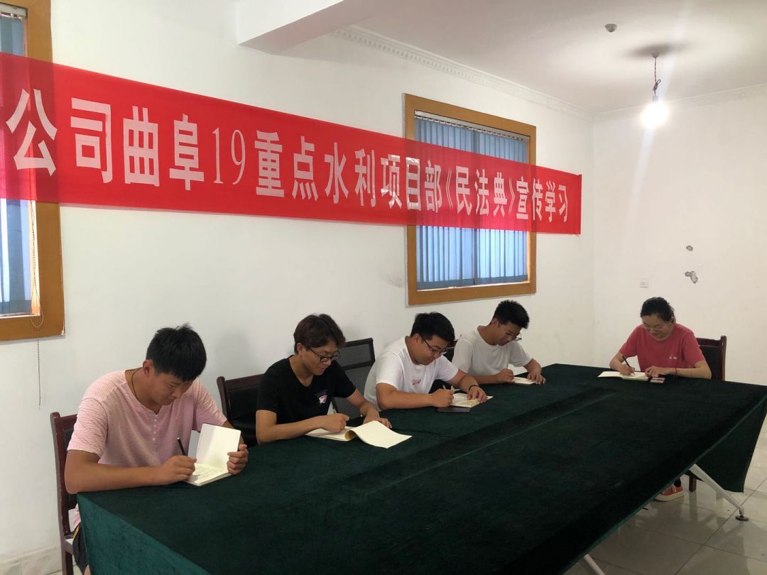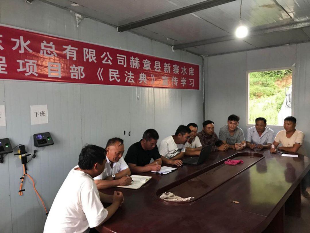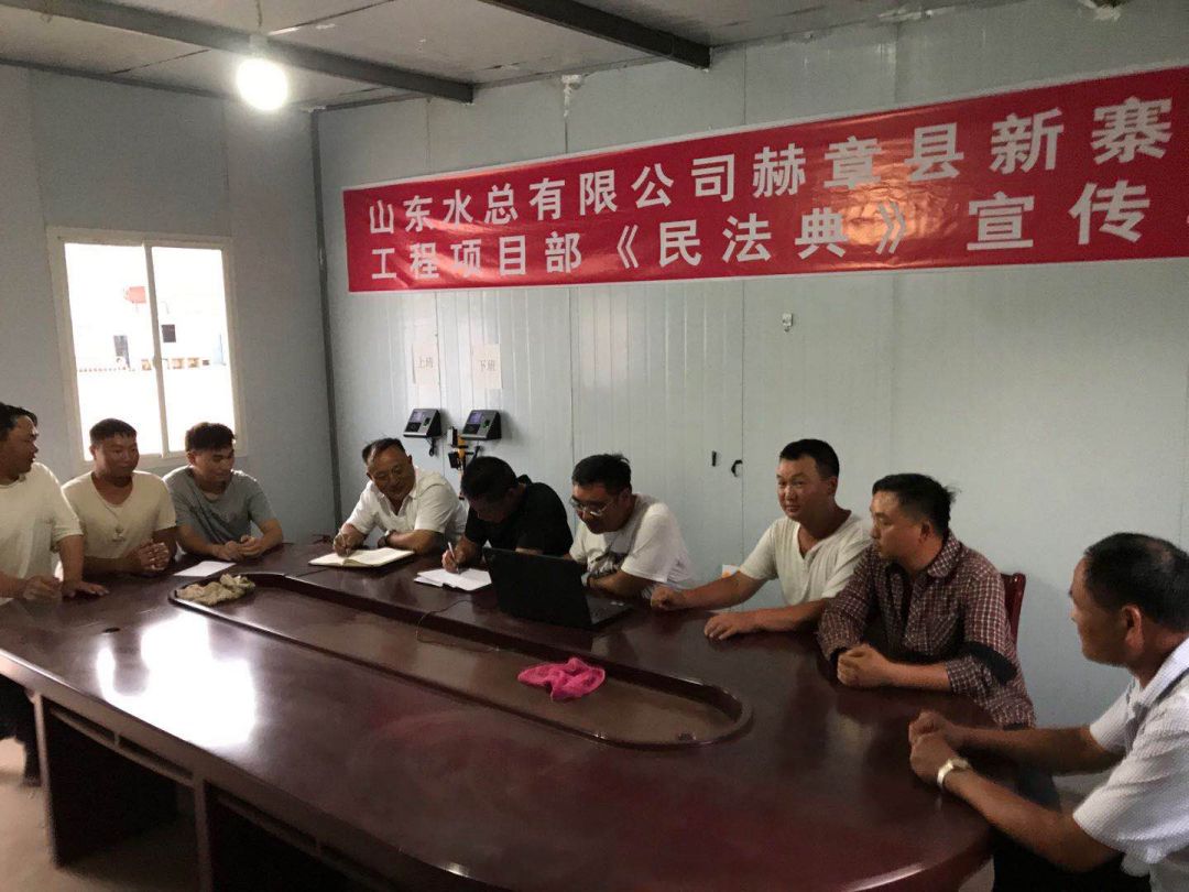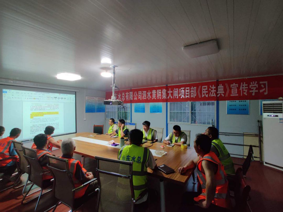 为响应总中国电竞官方网法务与清收办公室组织的“《民法典》宣传月”活动, 7月23日晚上,泗水县黄阴集大闸除险加固工程项目经理部在工地会议室召开《民法典》学习宣贯会议、2020年7月25日,赫章县新寨水库工程项目部全体成员在会议室进行《民法典》宣传学习、曲阜2019年重点水利建设项目施工 一标段在2020年7月28日进行《民法典》学习、平塘县擦耳岩水库工程项目2020年7月29日进行《民法典》学习、宣贯情况汇报如下: