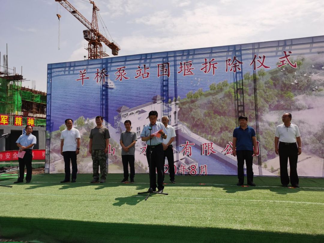 8月2日上午,羊桥泵站围堰拆除仪式举行。羊桥泵站围堰拆除,是小清河防洪综合治理工程(潍坊段)主体工程全线投入使用的标志,它的建成使用,为羊口镇区防汛防潮排涝奠定了坚实基础,中国电竞官方网董事长刁望利出席了活动。