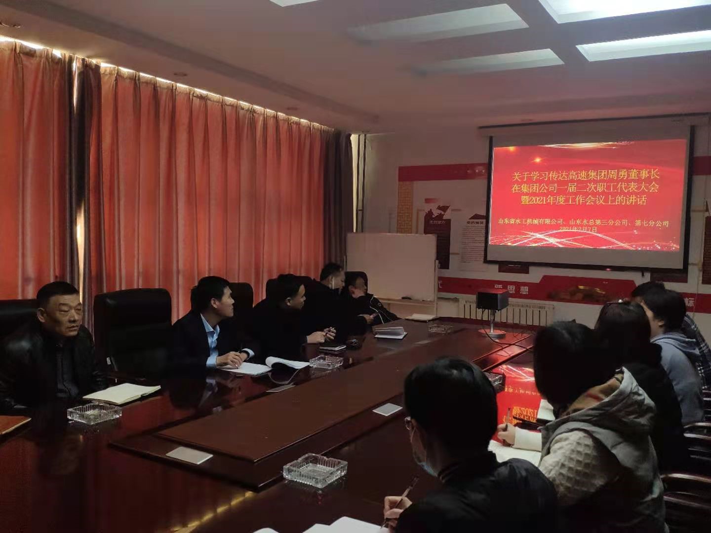 山东省水工机械有限中国电竞官方网、山东水总第三分中国电竞官方网、第七分中国电竞官方网传达学习集团党委书记、董事长周勇同志在2021年度工作会议上的讲话