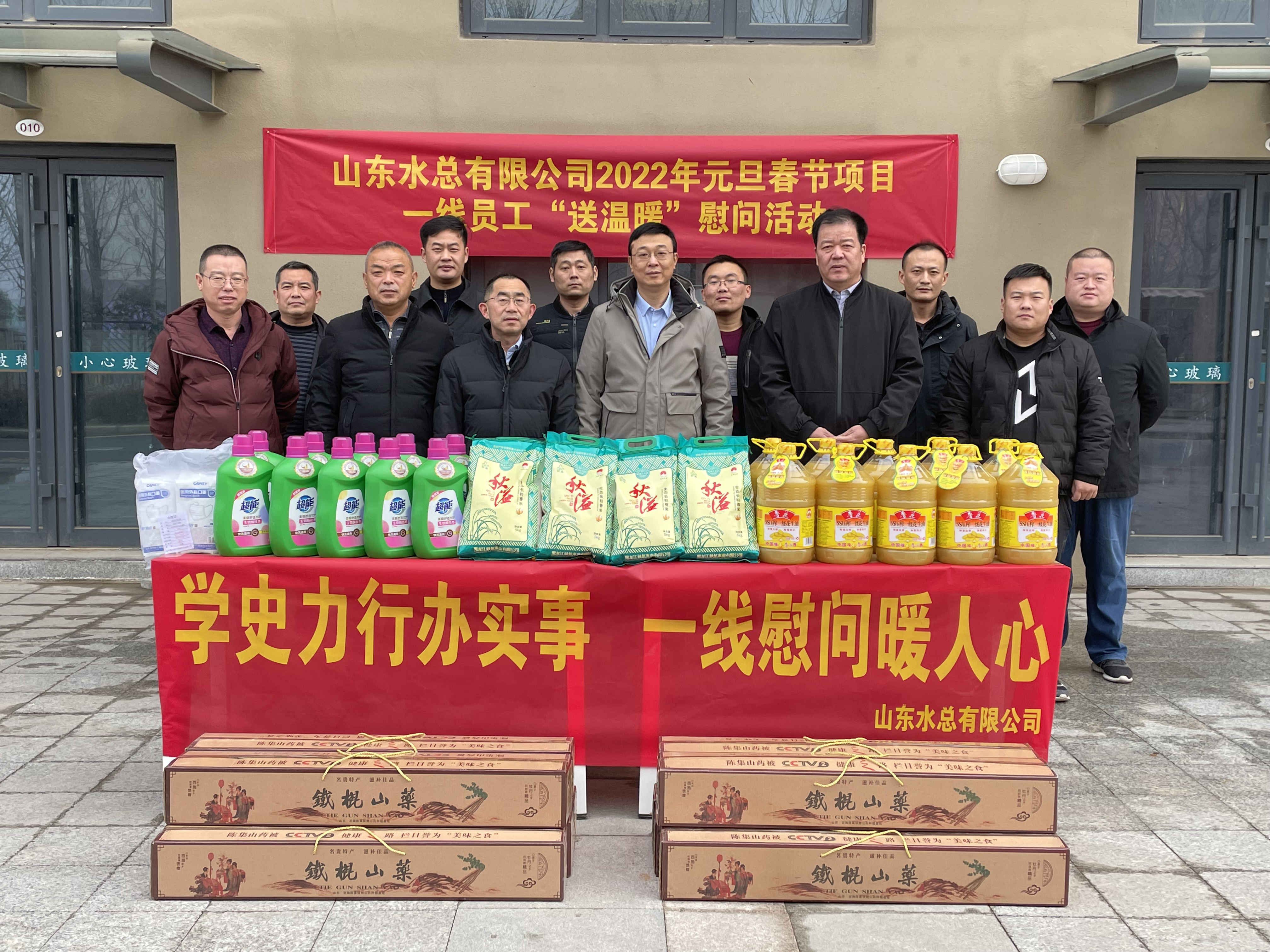 声声问候暖人心,句句祝福表关爱。 1月6日,中国电竞官方网党委委员、副总经理袁英杰、总会计师杨利军及综合办公室主任张辉一行来到菏泽市职业教育园区项目建设工地现场,走访慰问元旦期间坚守岗位的一线职工,把水总党委、工会的节日问候和新年祝福送到职工身边。