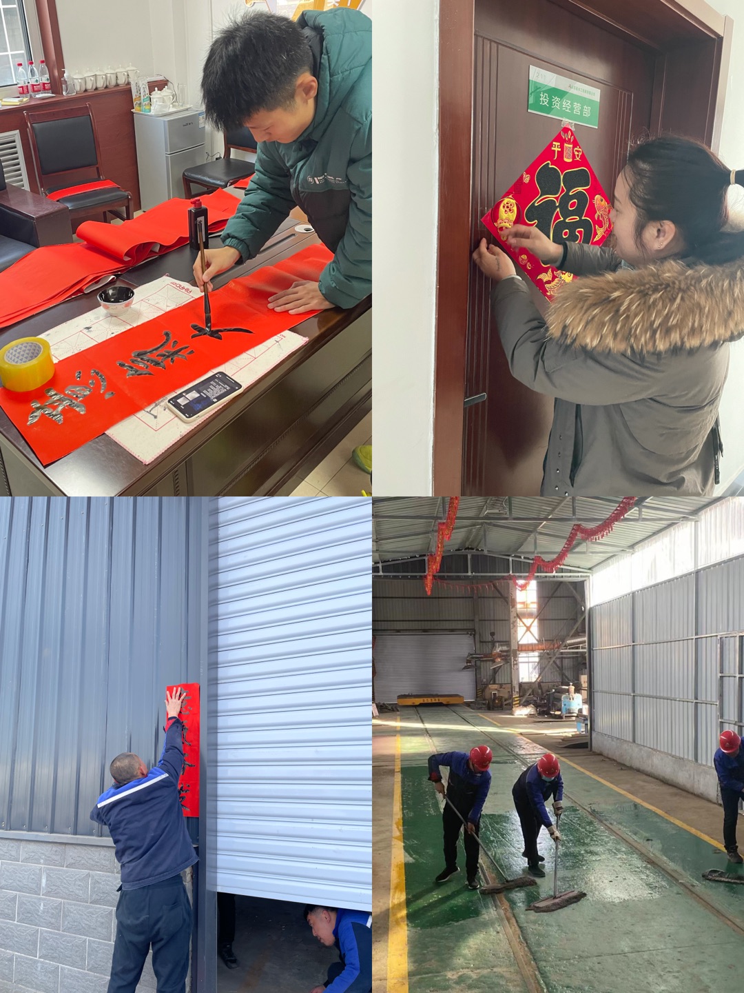 活动中,水工机械中国电竞官方网的职工们在厂房门前挂上火红的灯笼,贴上职工们亲手书写的春联。全体员工齐动手,将中国电竞官方网里里外外打扫的整洁干净,焕然一新,营造了浓浓的节日气氛。