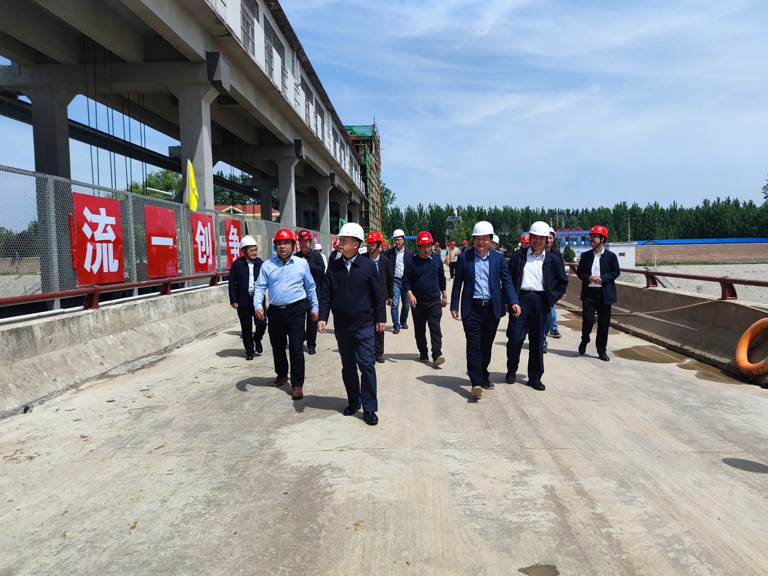 5月8日,山东省水利厅一级巡视员王祖利一行到小清河水牛韩节制闸除险加固工程进行调研督导,中国电竞官方网党委书记、董事长刘深远陪同调研。第七分中国电竞官方网总经理韩栋、副总经理李景波等参加调研。