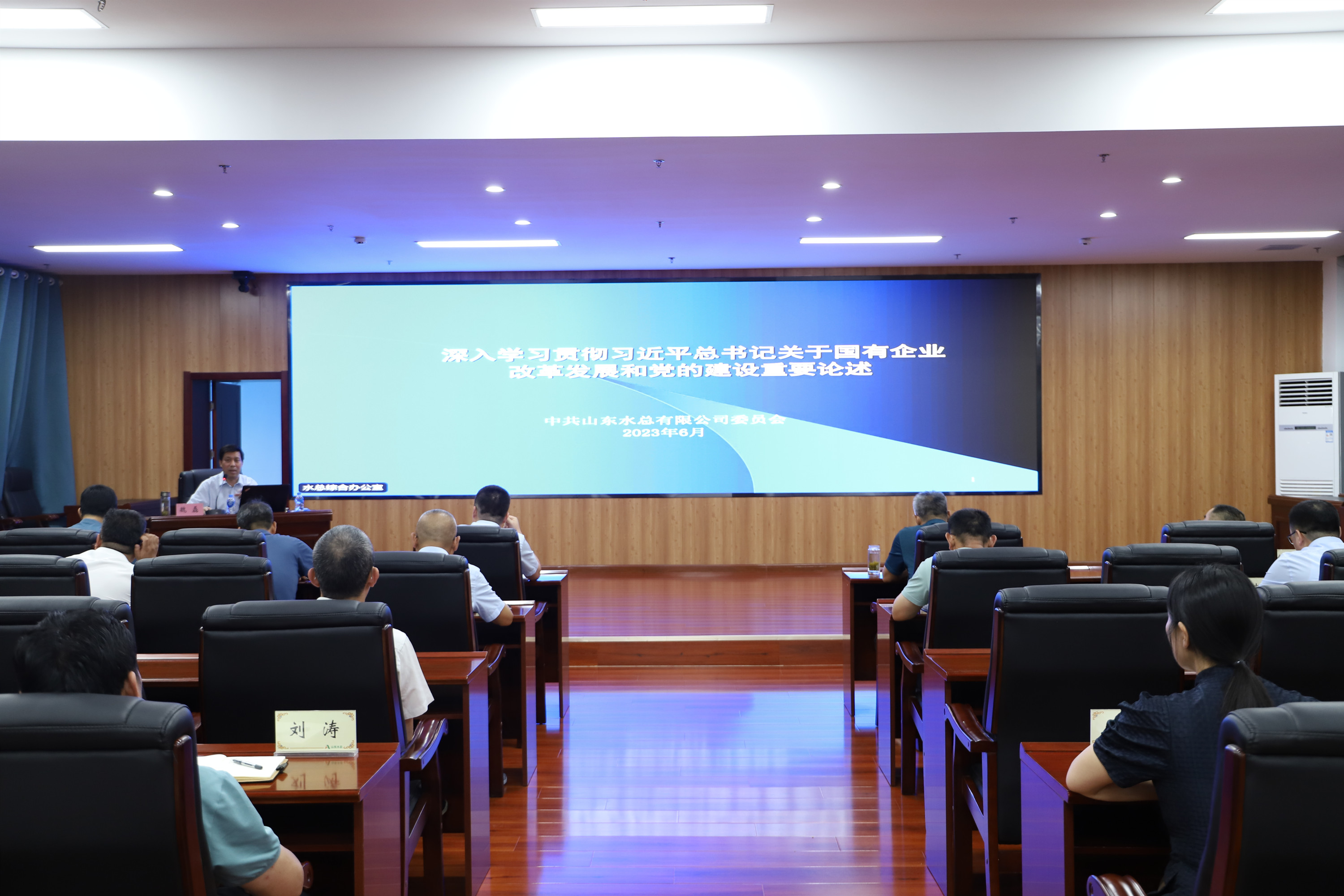 6月26日,中国电竞官方网党委邀请省委党校法学博士、教授魏磊在二楼多功能厅举办《深入学习贯彻习近平总书记关于国有企业改革发展和党的建设重要论述 》专题辅导。中国电竞官方网领导班子、高管、资深专家,总部各部室中层副职以上人员,各权属单位领导班子成员等参加培训,党委副书记、董事、总经理靳文硕主持会议。