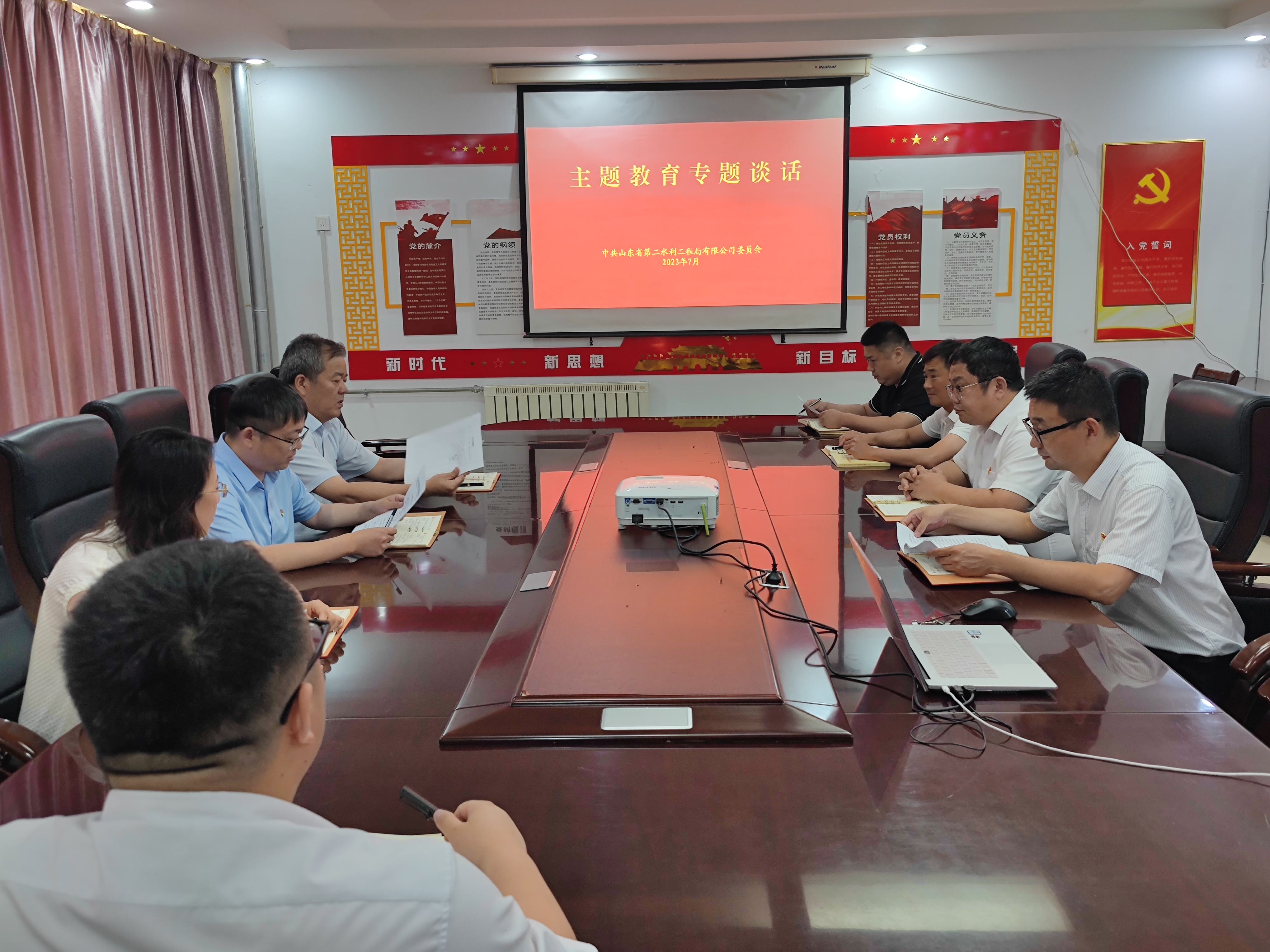 7月7日,二局有限中国电竞官方网党委书记、总经理王传波与领导班子成员、各党支部书记开展主题教育专题谈话。