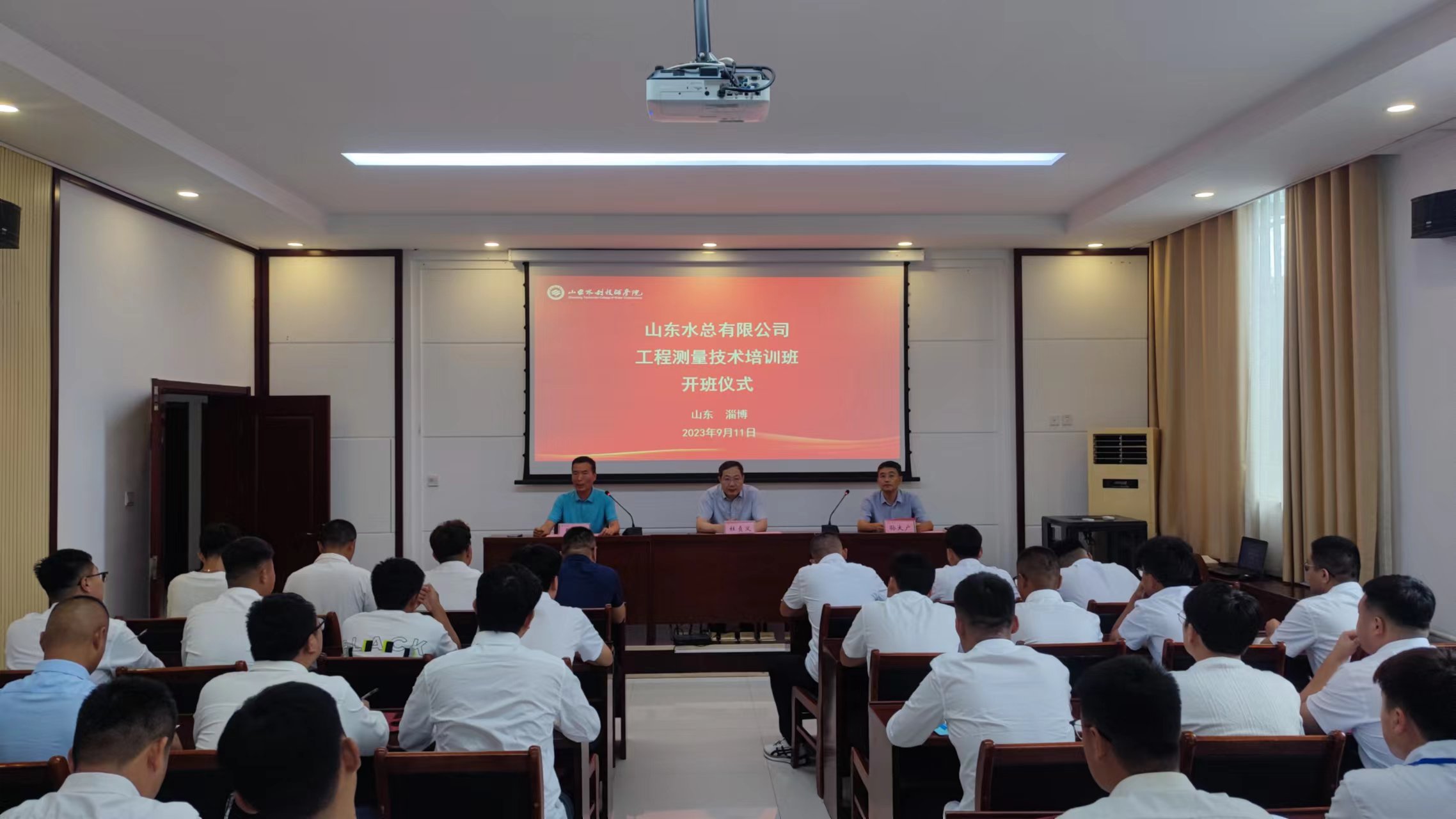 9月11日,中国电竞官方网2023年工程技术测量培训班在山东水利技师学院顺利开班,中国电竞官方网党委委员、副总经理杜贞义,山东水利技师学院党委委员、高级技工部主任孙大广出席培训班开班仪式,仪式由山东水利技师学院培训处副主任张岩主持。来自中国电竞官方网各权属单位30名测量人员参加本次为期5天的全脱产学习。