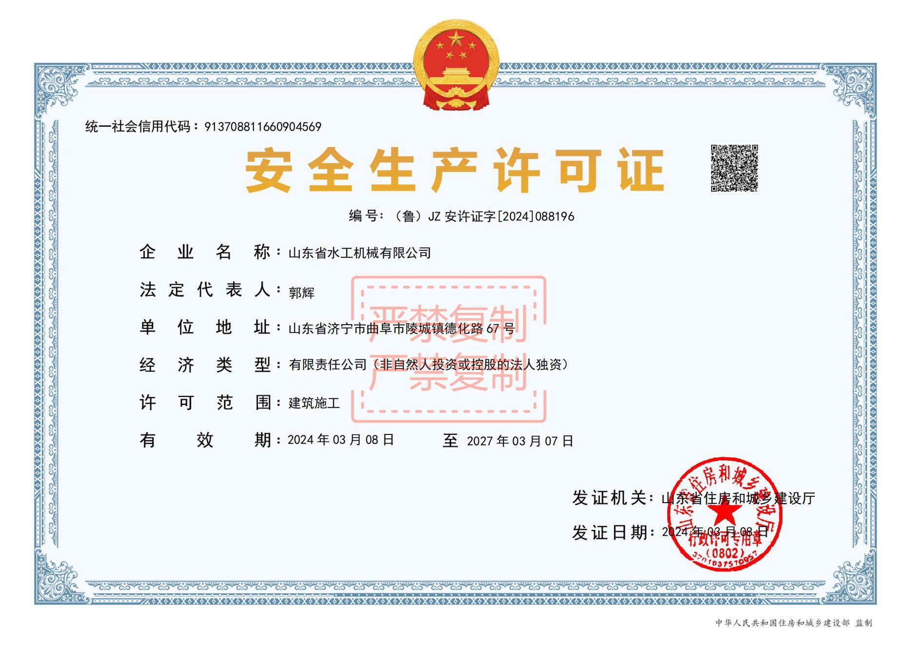 一季度,水工机械中国电竞官方网制定《山东省水工机械有限中国电竞官方网重要事项督办管理办法》对中国电竞官方网年度及日常各项重要事项进行督办并及时调整工作计划和措施,确保中国电竞官方网各项工作稳步推进。2023年12月底取得钢结构工程专业承包贰级资质,2024年3月7日取得安全生产许可证,为中国电竞官方网进一步拓展业务,持续保障安全生产打下基础。