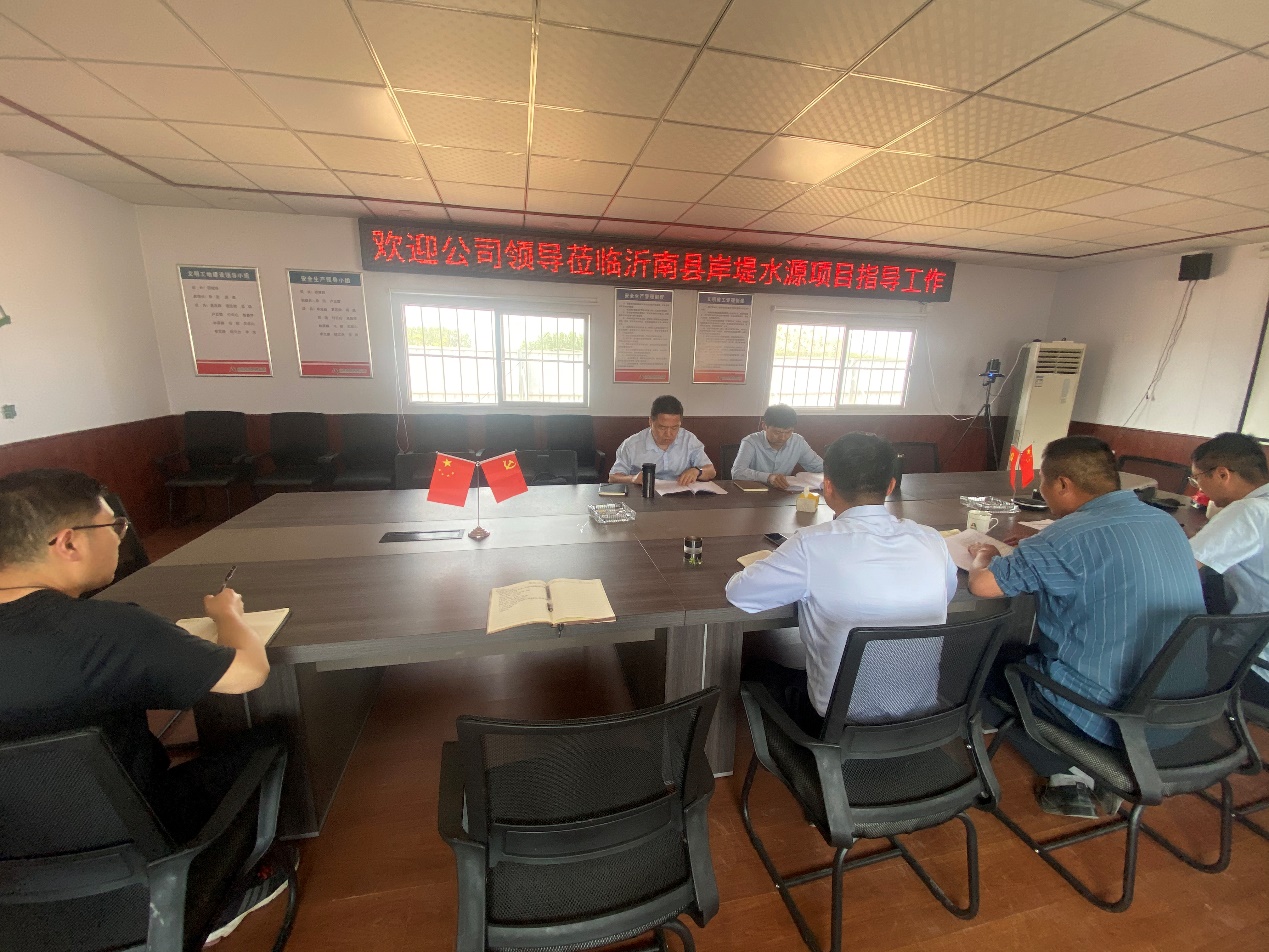近日,中国电竞官方网党委副书记、董事、总经理靳文硕到第三分中国电竞官方网沭河上游综合治理、沂南县岸堤水源、郯城县马头灌区等项目检查指导工作,并与部分建设、主管单位开展了商务洽谈,第三分中国电竞官方网党支部书记、总经理徐浩、副总经理王庆捷陪同。