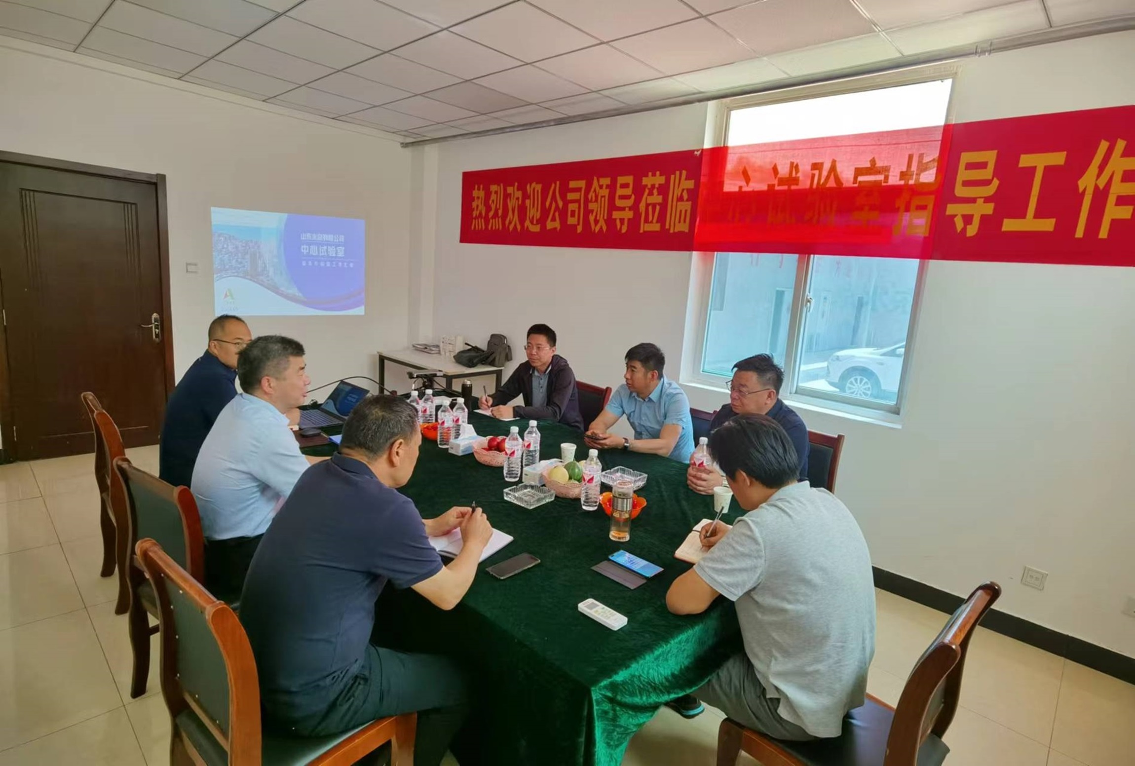 5月16日,中国电竞官方网党委委员、副总经理付海华与山东省水利工程局有限中国电竞官方网副总经理刘要军等一行到中心试验室开展调研指导、洽谈交流工作。