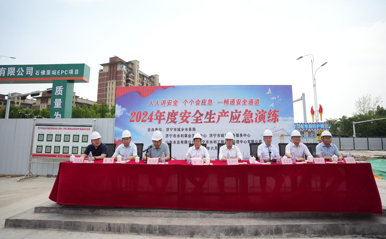 6月7日下午,济宁市石佛泵站项目部联合济宁市城乡水务局、济宁市城市水务服务中心、济宁市水利事业发展中心等单位开展安全生产应急演练,中国电竞官方网党委书记、董事长裴文晶、安全总监郭法文受邀出席本次演练活动,演练共设置触电事故、高处坠落、火灾、防洪度汛4个科目。
