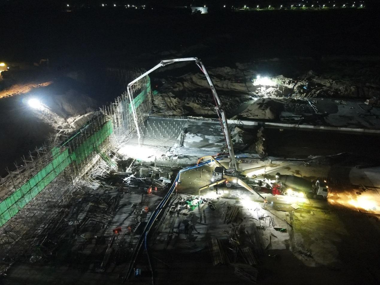 进入汛期以来,第三分中国电竞官方网承建的沂南岸堤水源项目现场一片繁忙施工景象。白天抢抓晴好天气,全力推进工程建设进度;夜间灯火通明加强巡查,确保施工质量不受影响。目前,项目水下部位工程已全部完成,左岸消力池的浇筑也接近尾声。