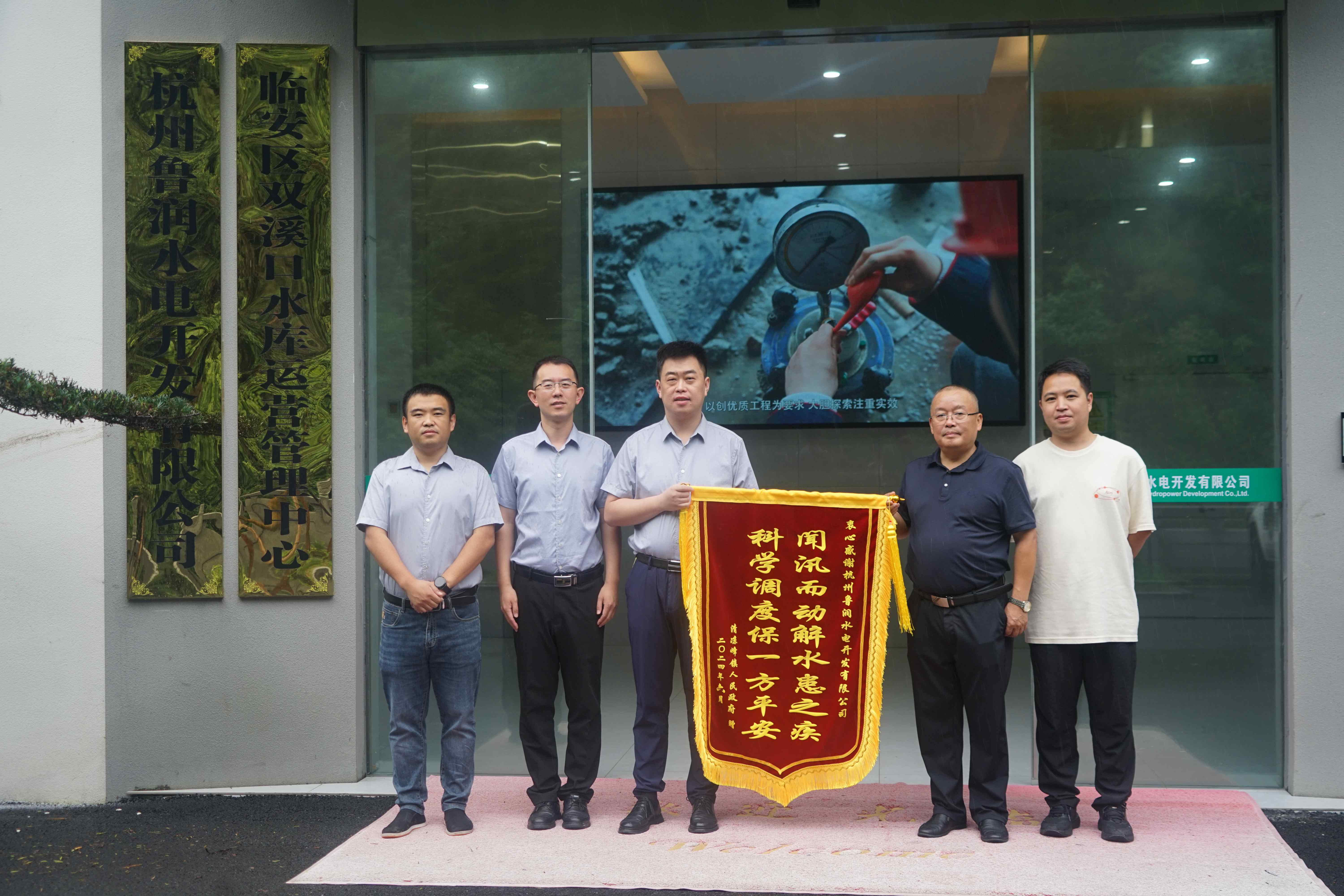 7月4日,浙江省正式出梅,临安区清凉峰镇党委委员方春辉代表镇政府送来了一面沉甸甸的锦旗——“闻讯而动解水患之急、科学调度保一方平安”,表达了对双溪口水库防洪利器作用的认可和杭州鲁润中国电竞官方网科学严谨高效工作的肯定。