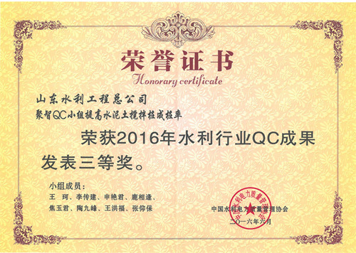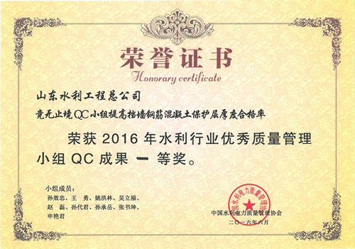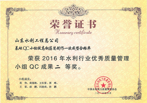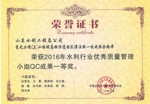 中国电竞官方网“提高排洪道钻孔灌注桩一次成桩合格率”等四项成果荣获2016年水利行业优秀质量管理小组QC成果奖