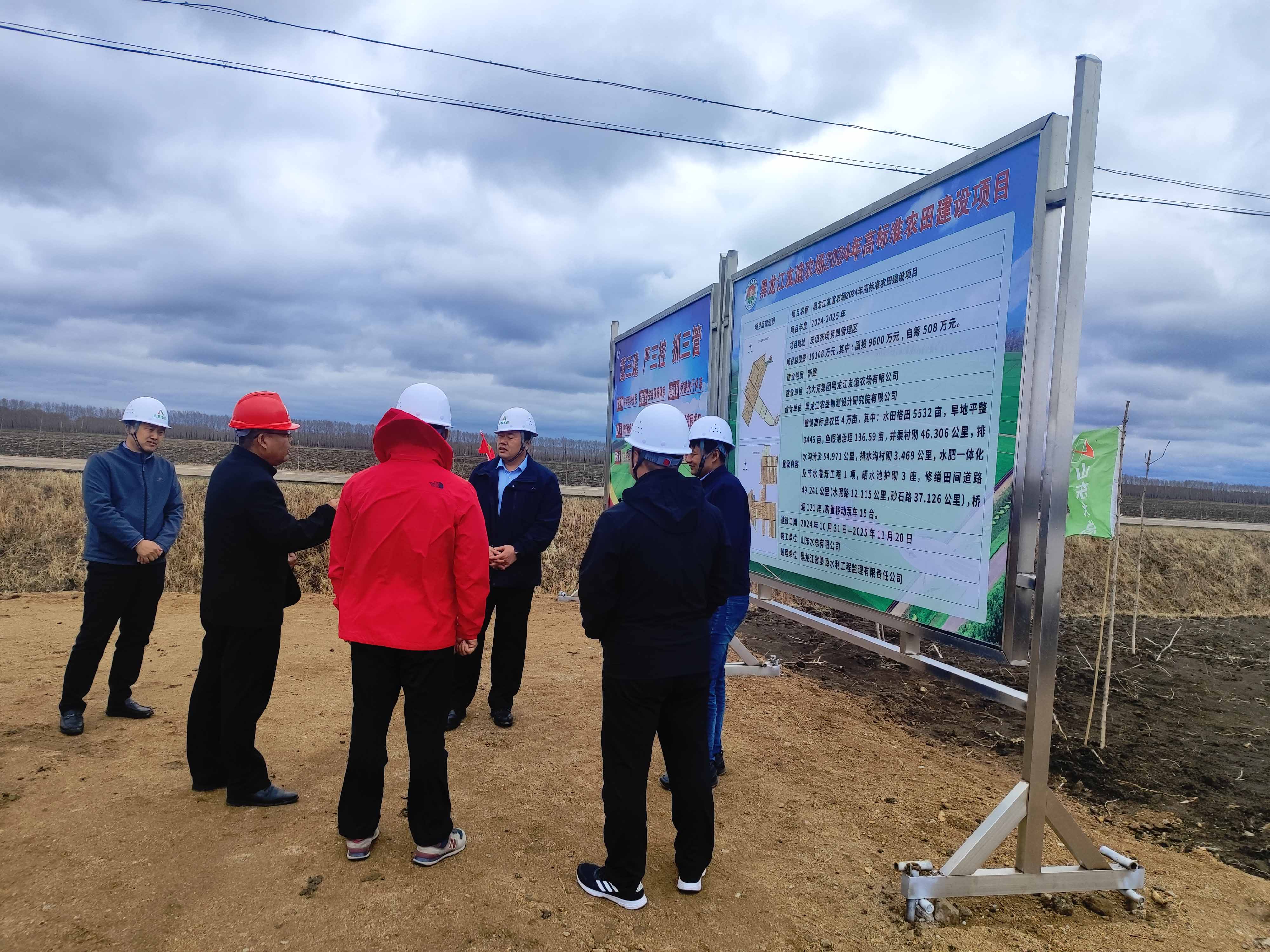 裴文晶一行首先来到黑龙江省粮食产能提升项目了解项目进展,并同项目部一线人员进行交流。随后,调研组来到黑龙江友谊农场2024年高标准农田建设项目,同北大荒集团黑龙江友谊农场有限中国电竞官方网副总经理樊庆华进行会谈。双方对当前项目的总体进度、面临的机遇和挑战进行了分析和研讨,并对下一步如何加强合作进行深入交流,展望两家省级国有企业合作的未来,努力发挥山东水总基础建设和北大荒集团农业生产运营的优势,打造出“1+1>2”的效果。