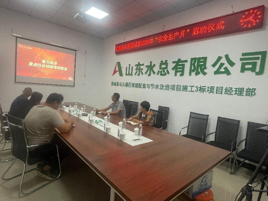 为大力推进项目安全生产工作,提高全员安全意识,迅速营造“安全生产月”活动氛围。近日,第三分中国电竞官方网以郯城县李庄灌区项目部作为主会场召开2025年“安全生产月”动员会暨启动仪式,各项目部视频参会。