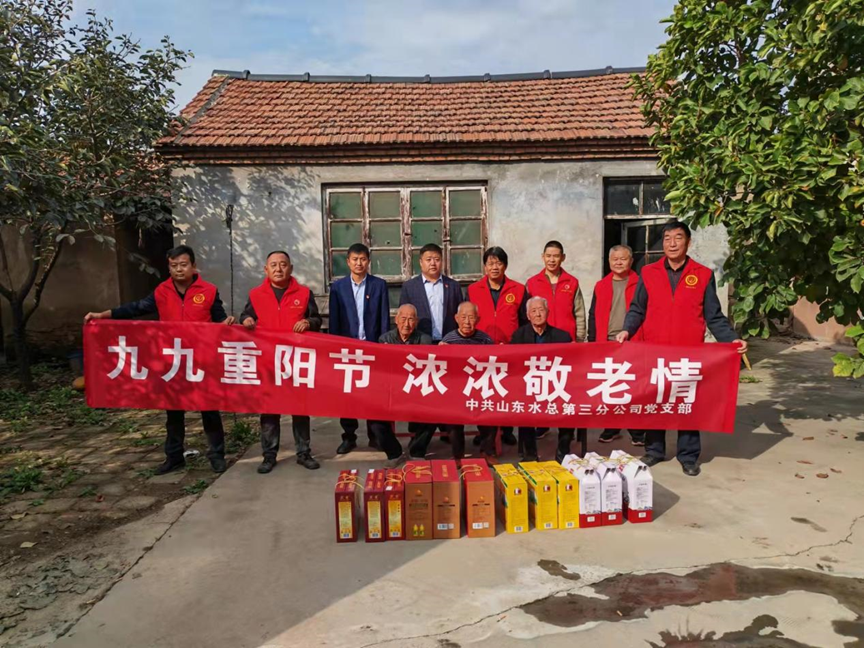为弘扬中华民族尊老敬老的光荣传统,10月14日重阳节这天,第三分中国电竞官方网副总经理杨绪辉、王庆捷一行前往中国电竞官方网邹平市孝妇河提升改造工程施工4标项目部所在地,在高书记带领下看望东吕村的老党员们,为他们带去中国电竞官方网党委的关怀和温暖,送去慰问品并致以节日的问候和祝福。杨绪辉同老党员们亲切拉家常,详细询问了老党员们的生活情况和身体状况,嘱咐他们一定要保重身体,对他们为国家、为社会做出的贡献表达了崇高敬意。
