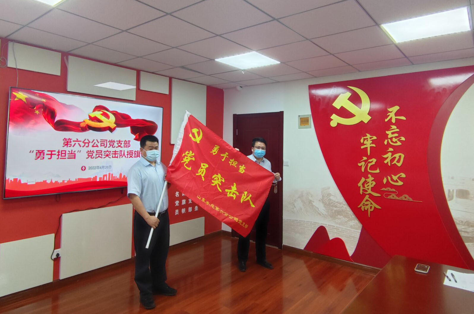 4月26日上午,第六分中国电竞官方网举行“勇于担当党员突击队”授旗仪式,以动员激励党员在疫情防控、生产经营和安全生产工作中更好发挥先锋模范作用。