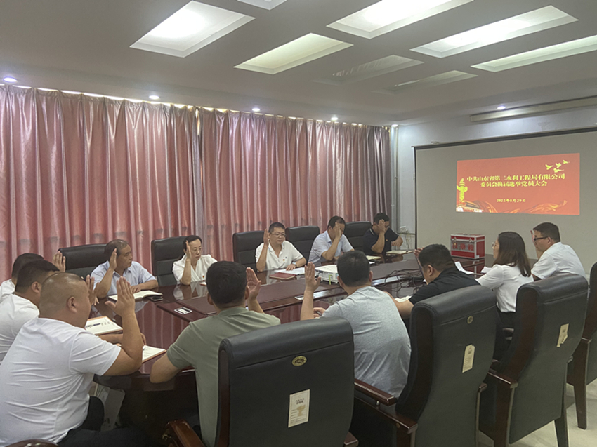 经山东水总党委批准,8月29日下午,二局有限中国电竞官方网党委召开全体党员大会,进行党委换届选举工作。会议由党委书记、执行董事、总经理王传波主持,中国电竞官方网全体党员参加。