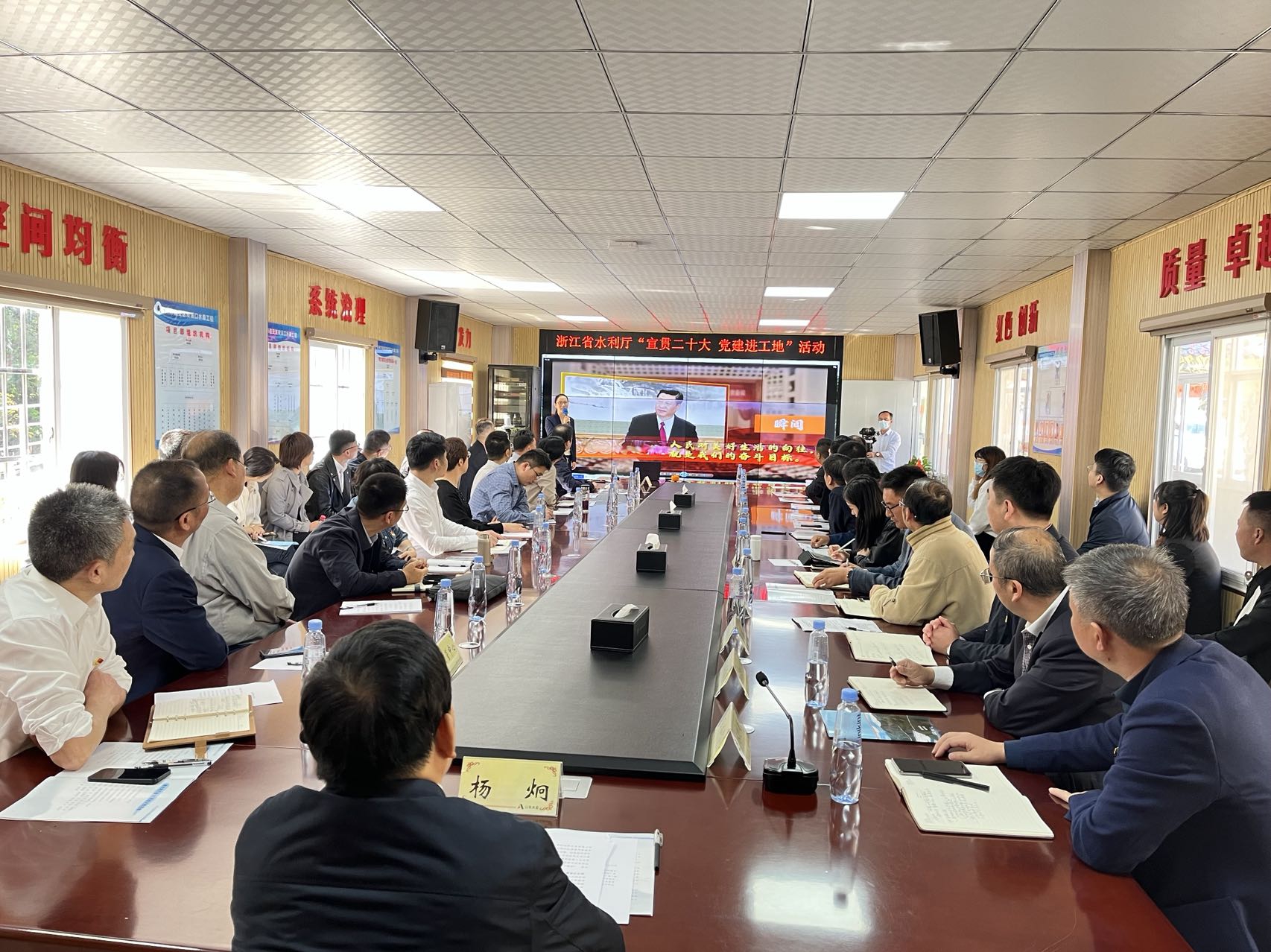11月10日,浙江省水利厅副厅长杨炯率省水利厅建设处、质管中心等负责同志到双溪口水库工程开展“宣贯二十大 党建进工地”活动。此次活动旨在把党建课堂搬到工程建设现场,把宣讲“二十大”深入基层,充分激发广大工程建设者建功新时代的积极性、主动性、创造性。