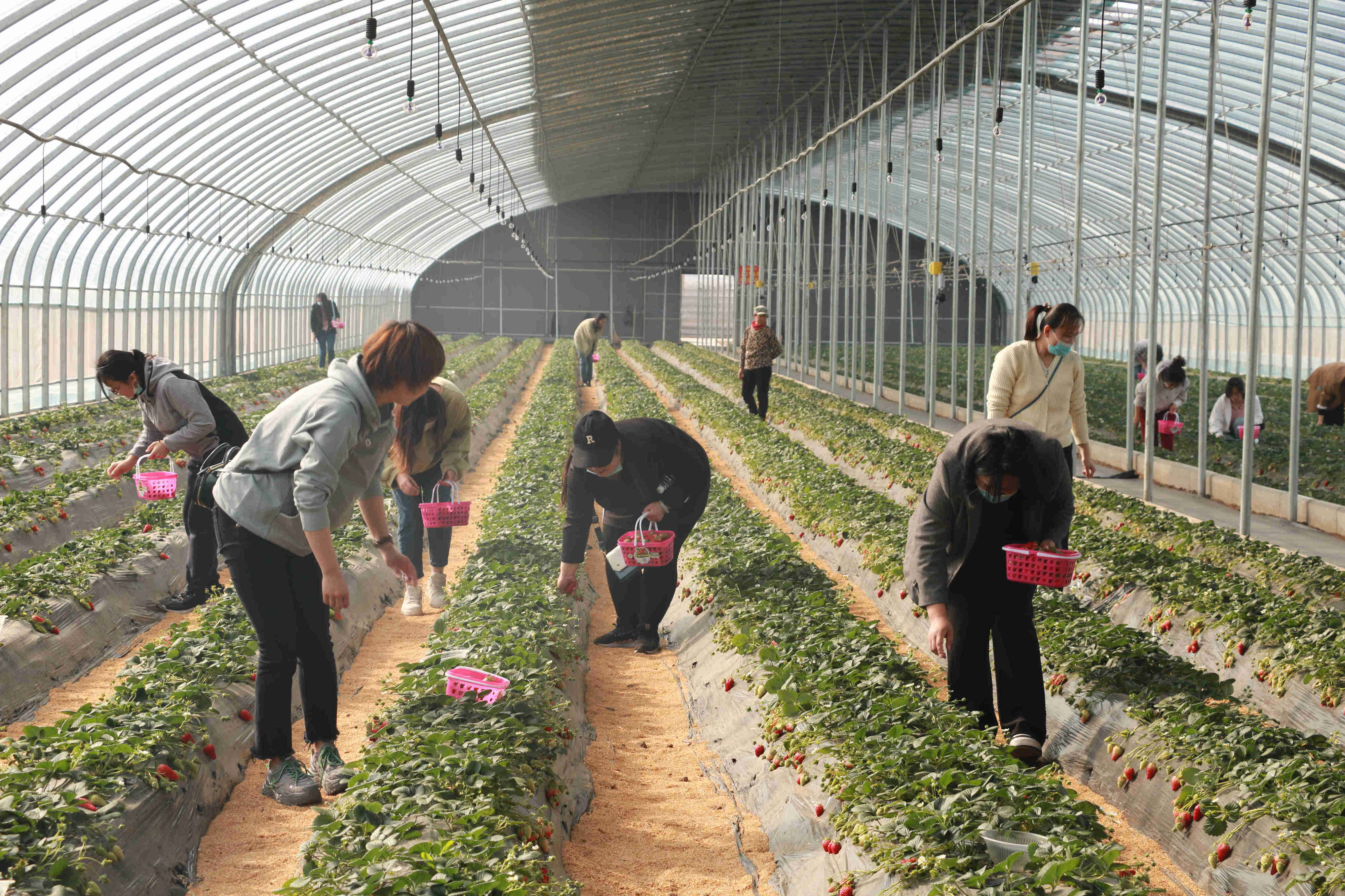 在草莓种植园里,女职工们尽情感受着春天的美好,心情格外愉悦。大棚里一片生机勃勃,翠绿的叶子、鲜红欲滴的果实、芬芳的果香让人感到春天即将到来的曼妙脚步。大家手提小果篮,沿着整齐的草莓田,化身快乐的小果农,一边采摘品尝,一边相互交流,气氛轻松活泼,体验着采摘草莓、品尝鲜果的乐趣,现场快乐与热情四溢。