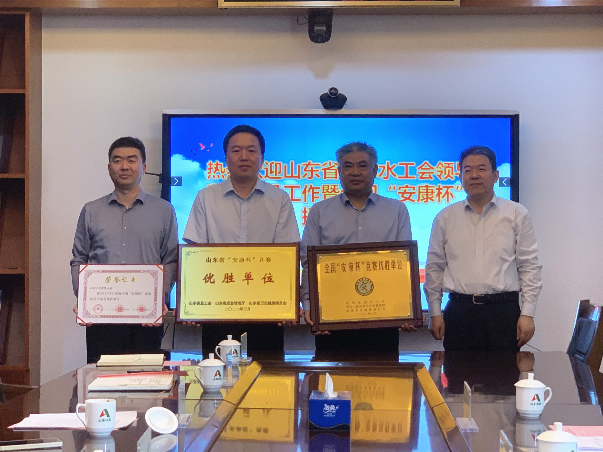 5月12日,中国电竞官方网举行了全国、山东省“安康杯”竞赛优胜单位授牌仪式。省农林水工会主席张志刚、主任科员吴开明,中国电竞官方网党委书记、董事长刘深远,党委副书记、董事、总经理靳文硕,党委委员、副总经理付海华,党委组织部、安全管理部相关人员参加仪式活动。