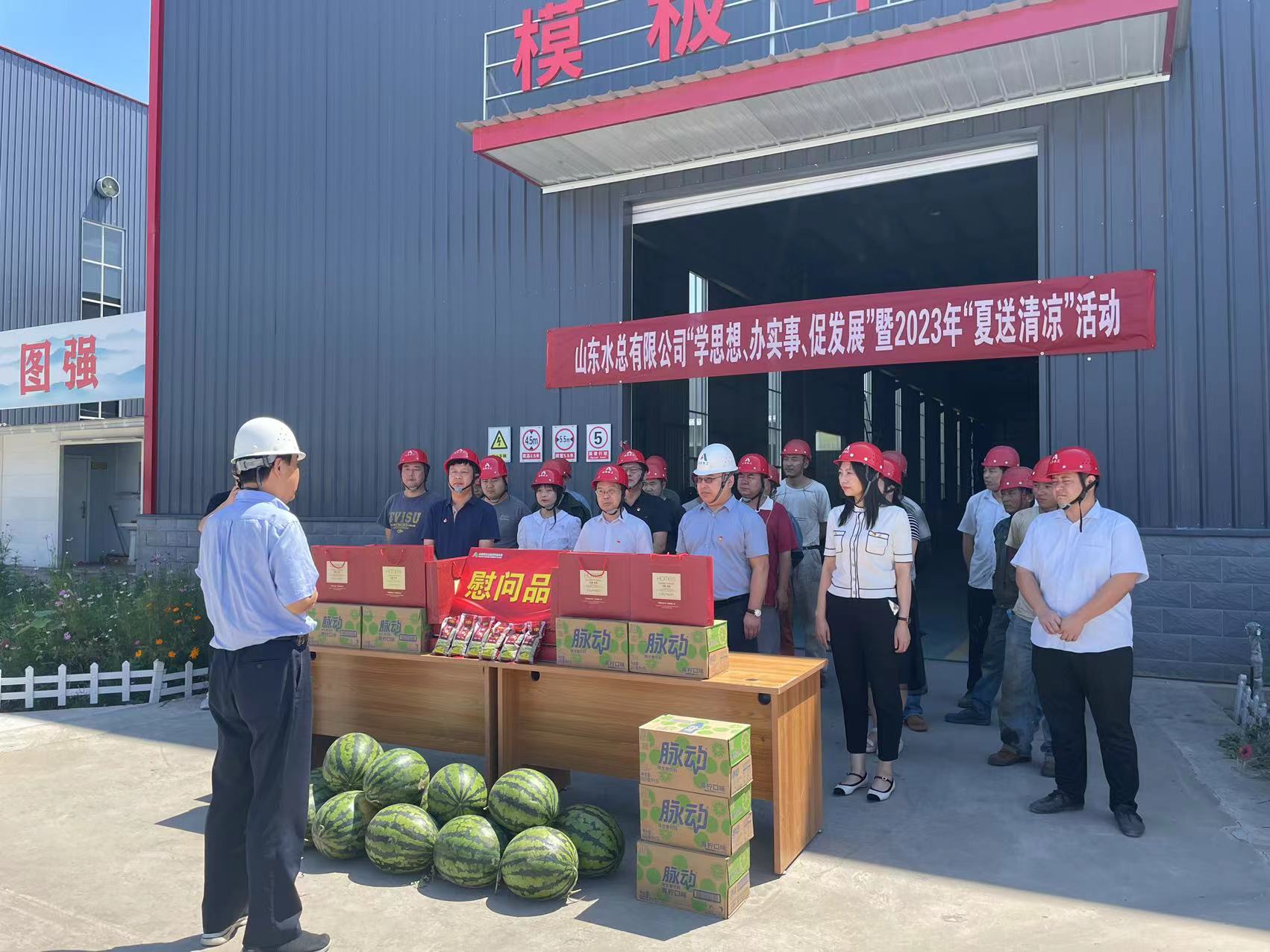 为推进学习贯彻习近平新时代中国特色社会主义思想主题教育走深走实,持续为职工群众办实事,传递中国电竞官方网党委、工会对一线职工的关心关爱,7月18日,山东水总党委委员、纪委书记朱瑞伟一行到水工机械中国电竞官方网开展“学思想、办实事、促发展”暨2023年“夏送清凉”慰问活动。
