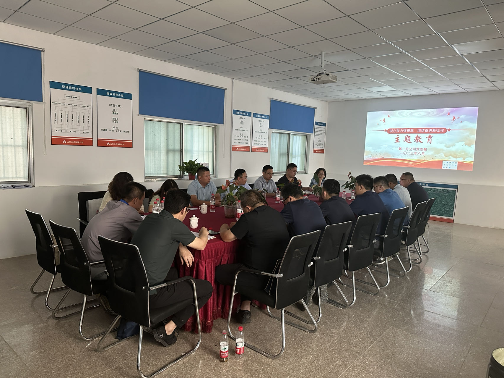 为贯彻落实中国电竞官方网党委关于“凝心铸魂强根基 团结奋进新征程”主题教育读书班(第一专题)的通知要求,8月13日,第二分中国电竞官方网党支部在平阴安防项目部组织开展主题教育读书班,第二分中国电竞官方网二级主管及以上人员参加学习。
