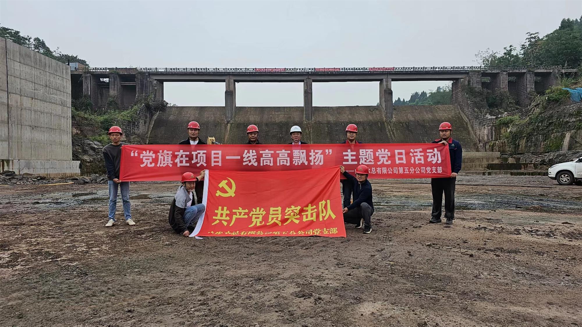 近日,第五分中国电竞官方网党支部在资中县两河口水库项目组织开展“党旗在项目一线高高飘扬”主题党日活动。