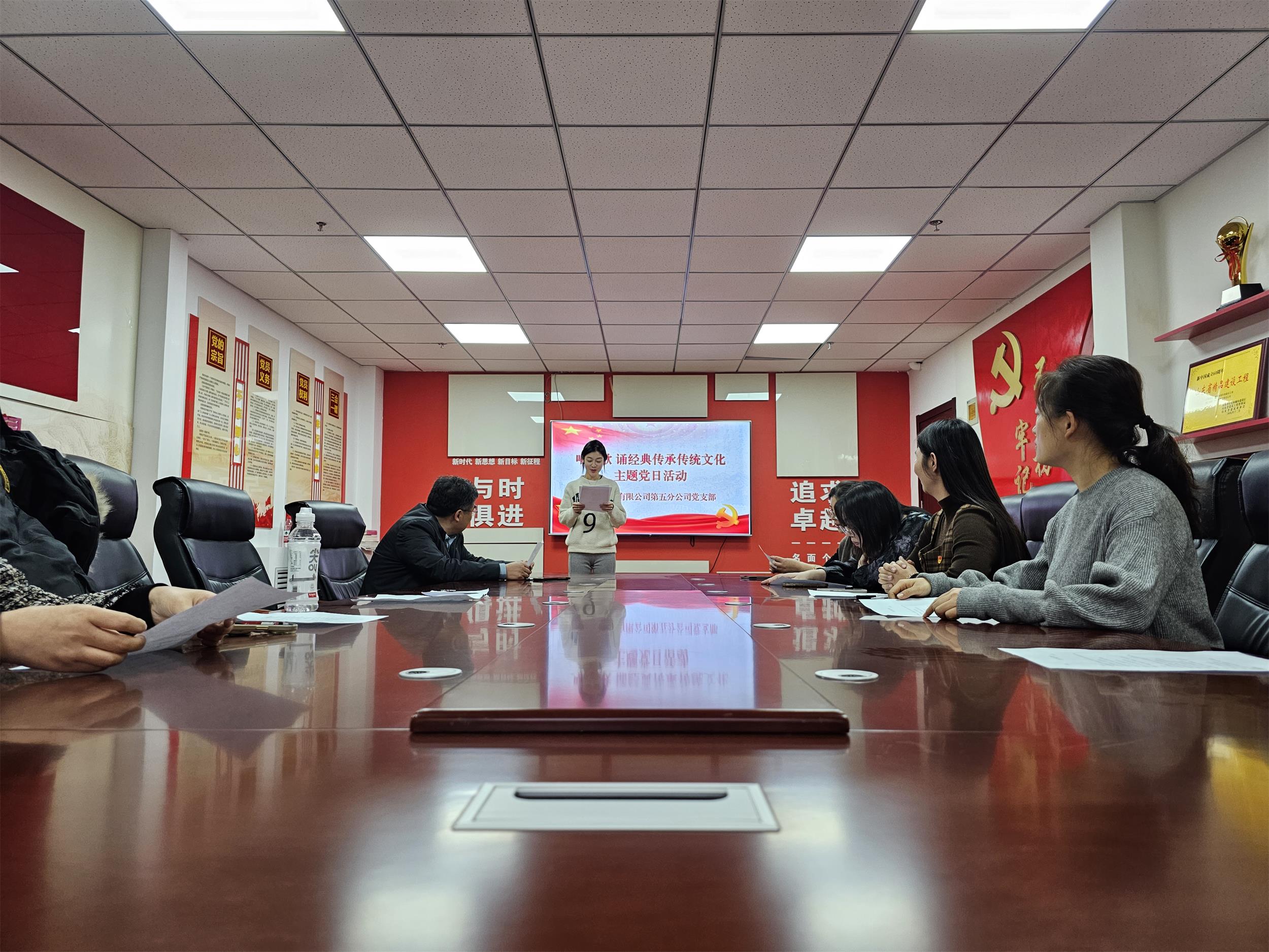 近日,第五分中国电竞官方网党支部组织开展了“唱红歌、诵经典,传承传统文化”主题党日活动。