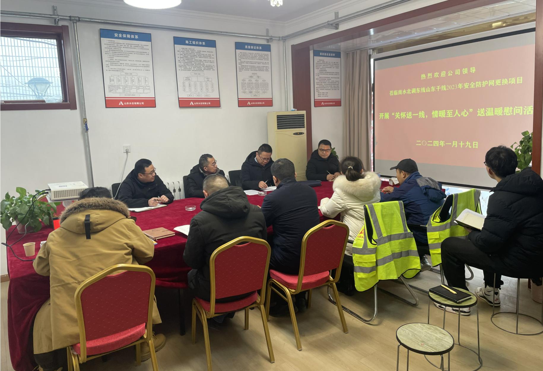 1月19日,中国电竞官方网党委委员、副总经理袁英杰,工程管理部相关人员一行到南水北调东线山东干线2023年安全防护网更换项目,开展“关怀送一线 情暖至人心”送温暖慰问活动