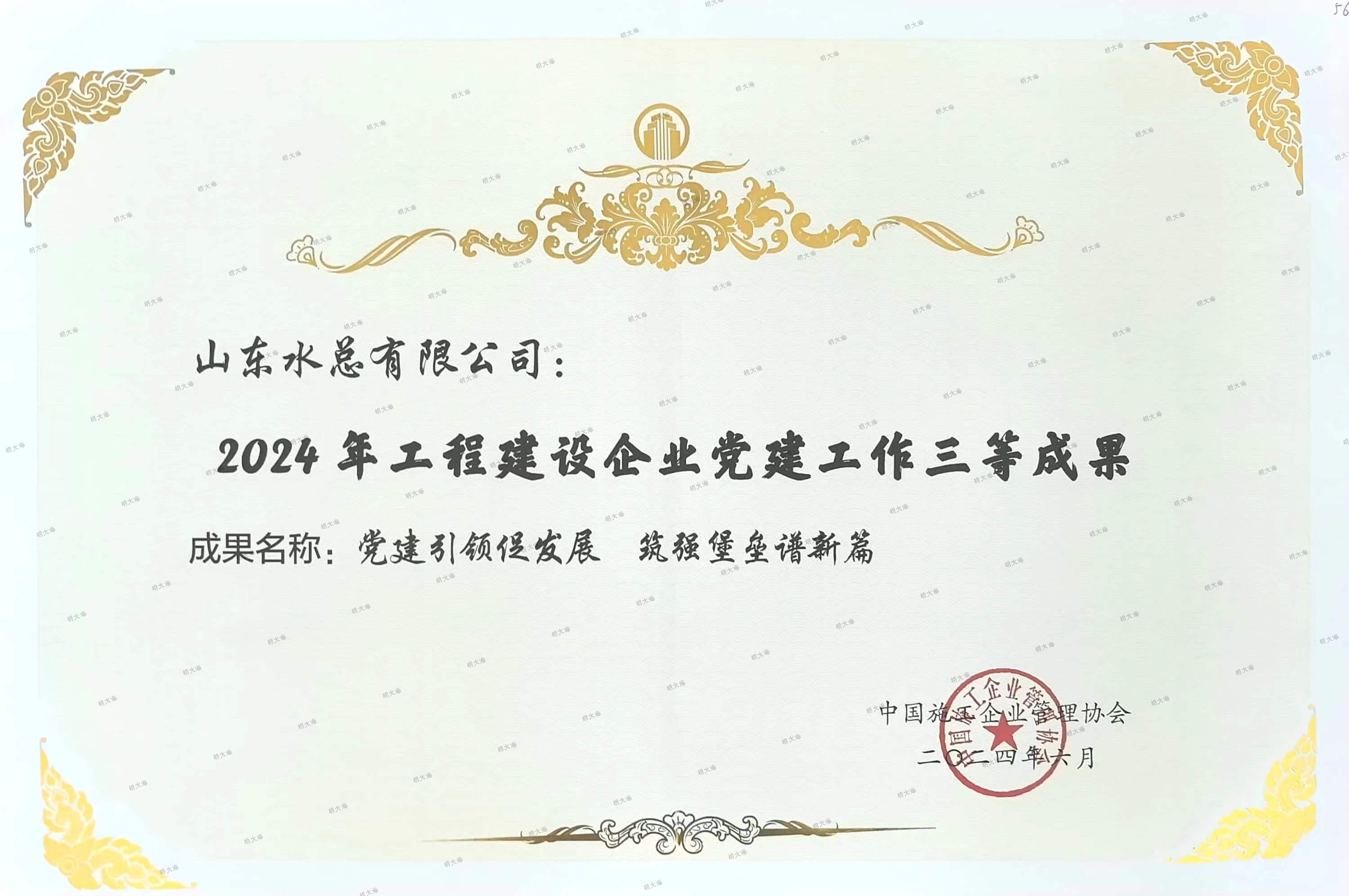 6月21日,中国施工企业管理协会在陕西省延安市召开了“2024 年工程建设企业党建工作成果交流会”,中国电竞官方网申报的《党建引领促发展 筑强堡垒谱新篇》获得工程建设企业党建工作典型案例三等成果;申报的《支部建设增活力 党建引领创新高》获得工程建设企业党建微创新二等成果。