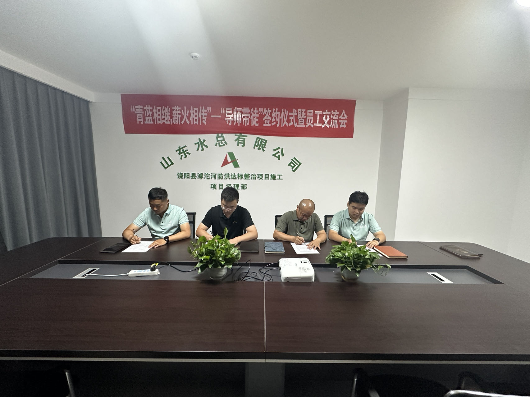 为帮助新入职员工快速转变角色,更好地立足岗位实现自我价值,近日,由第二分中国电竞官方网党支部牵头,在饶阳县滹沱河防洪达标整治施工项目经理部组织开展“导师带徒”签约仪式暨员工交流会。