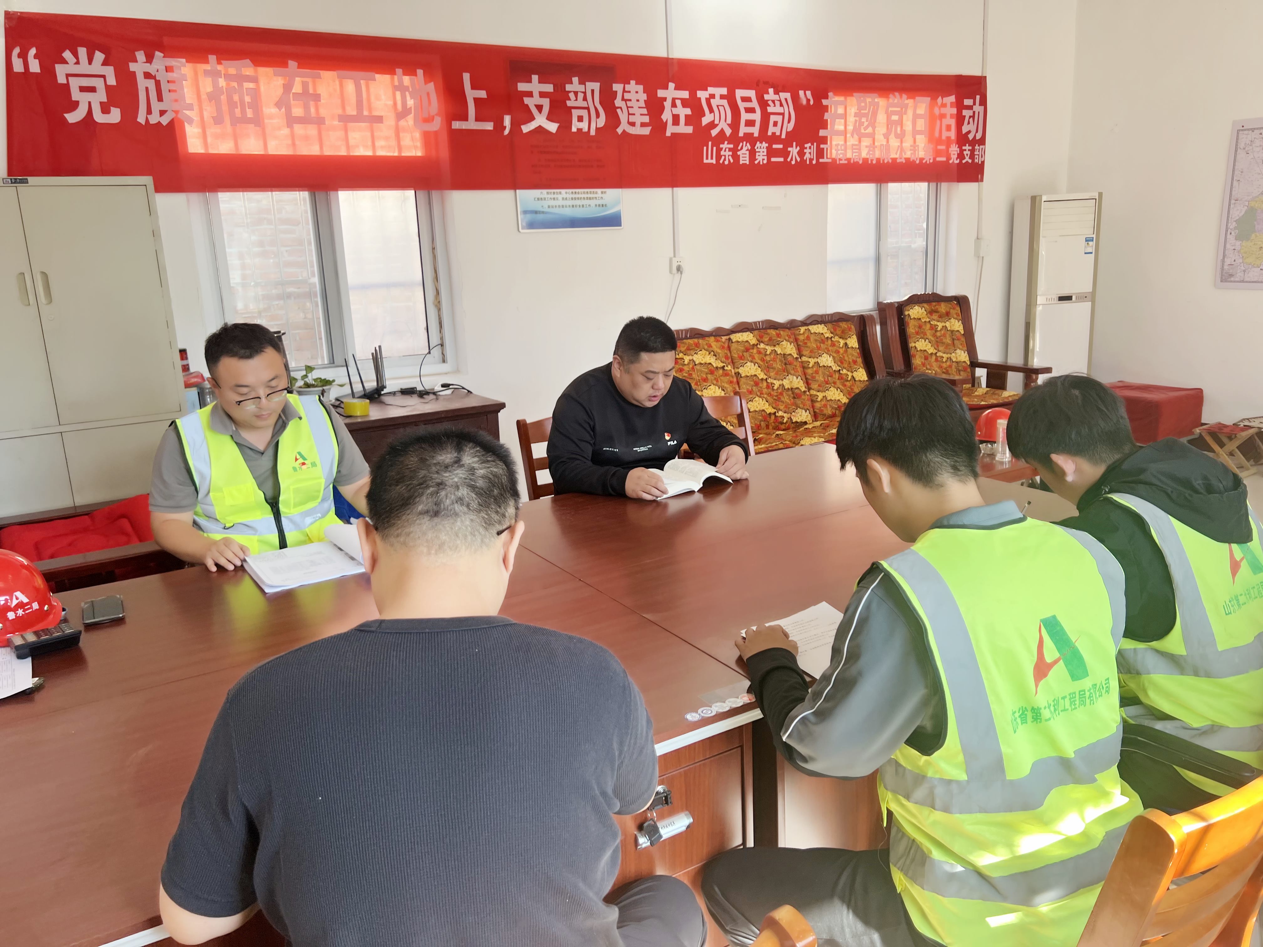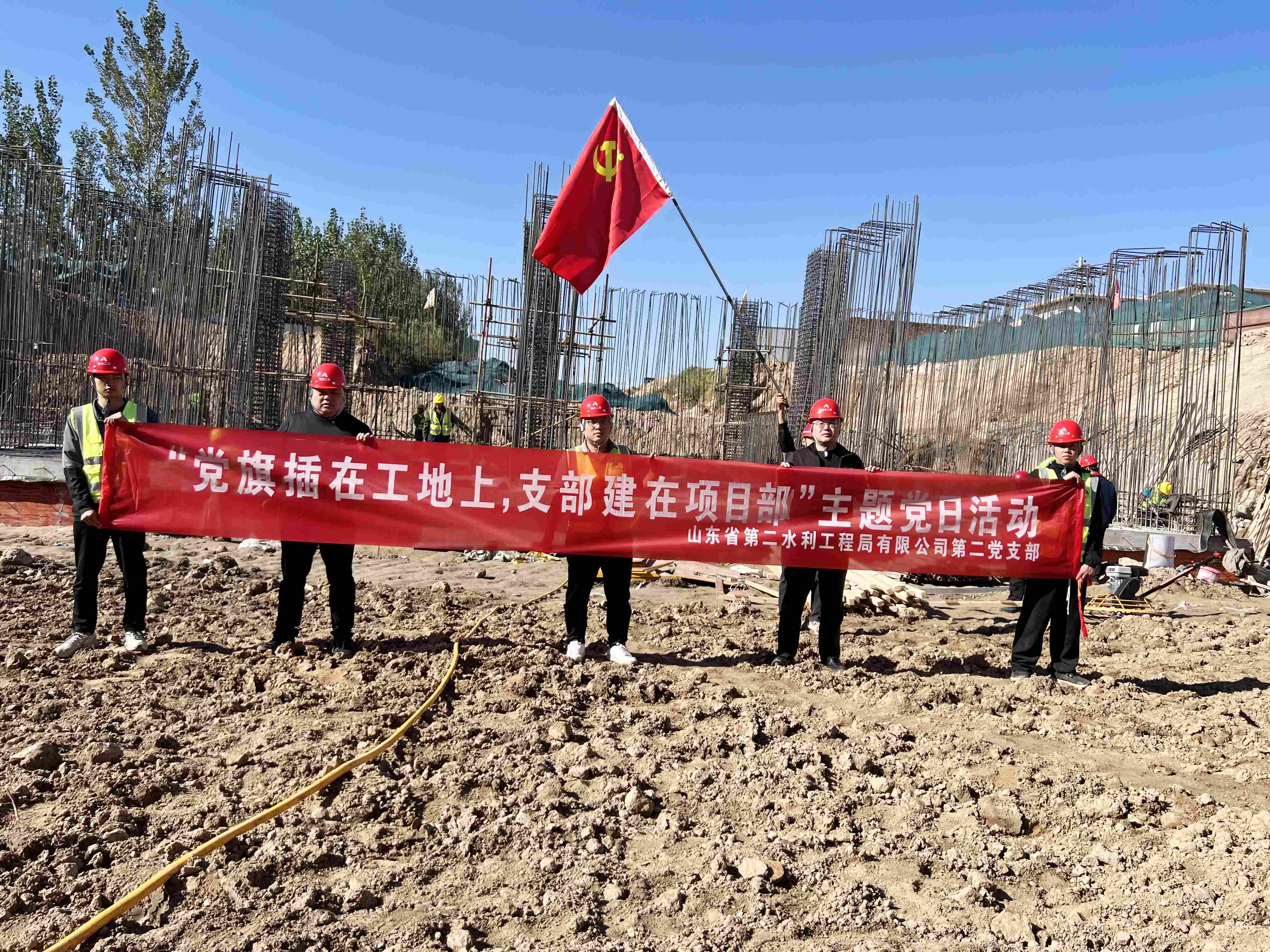 为深入开展“党建进工地”活动,推进党建与业务工作深度融合,近日,二局有限中国电竞官方网第二党支部在聊城市位山灌区项目施工现场组织开展“党旗插在工地上,支部建在项目部”主题党日活动。