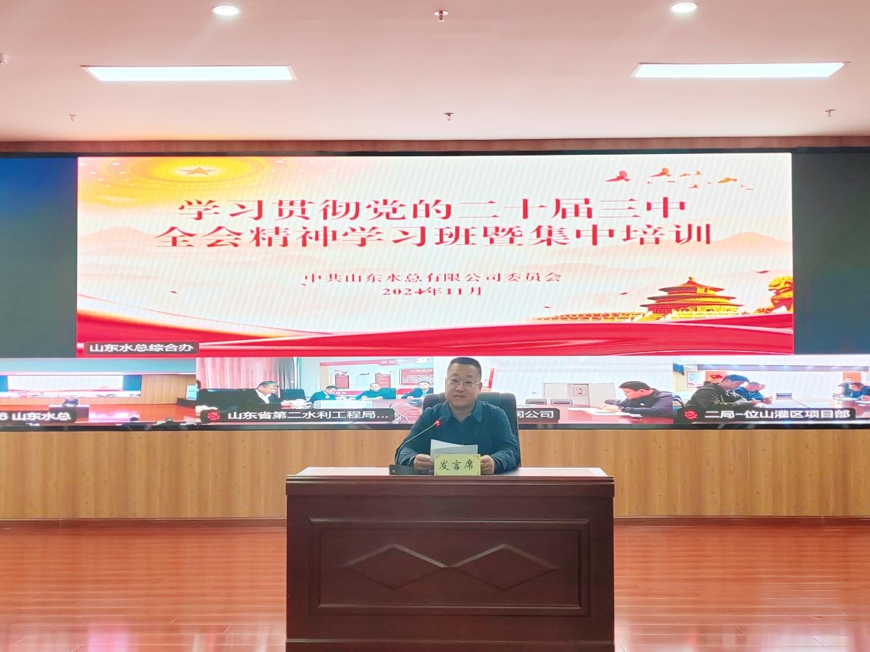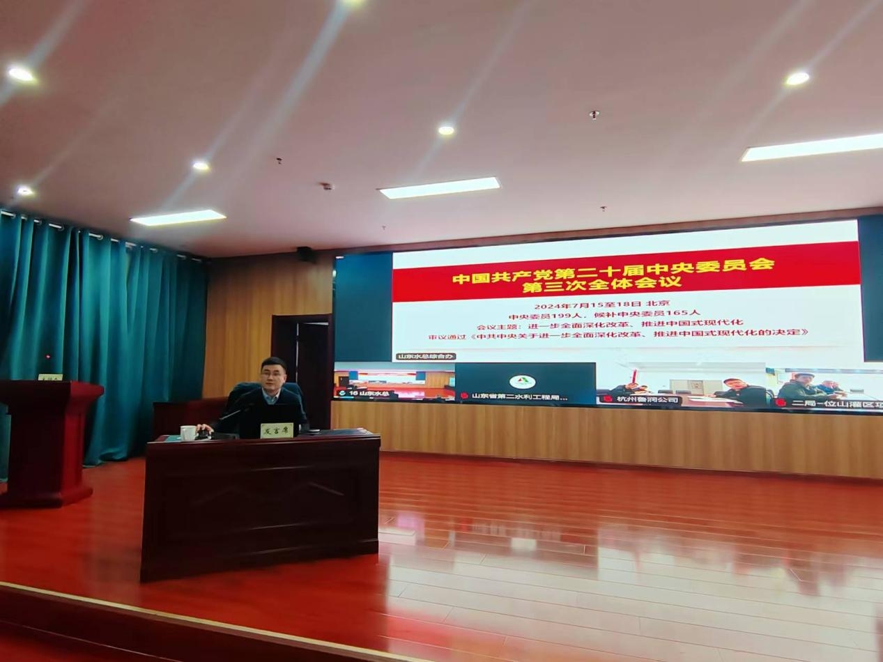 为深入学习贯彻落实党的二十届三中全会精神,按照山东高速集团党委统一部署,11月18日,山东水总中国电竞官方网党委组织举办了党的二十届三中全会精神学习班暨集中培训,教育引导广大党员干部深入领会党的二十届三中全会的重大意义和丰富内涵,切实把学习成效转化为工作实效,推动习近平总书记重要指示要求、全会各项部署及上级党委工作安排在中国电竞官方网落实落地。本次专题学习班为期三天,采取辅导报告讲座、分组集中学习、交流研讨等相结合方式。